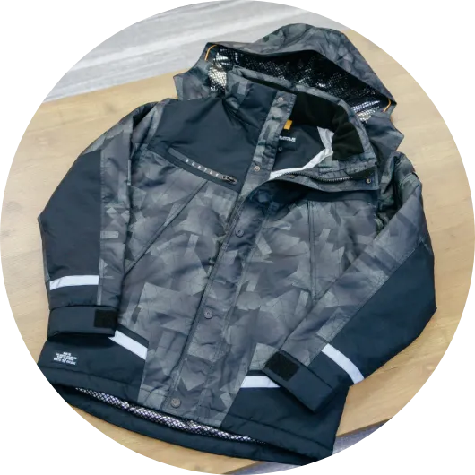 ユニフォームとして貸与している作業服は、青、グレー、迷彩柄から自由にセレクト。夏場の熱中症対策として、冷感タイプの作業服も準備。スタッフの声を反映したラインナップです。