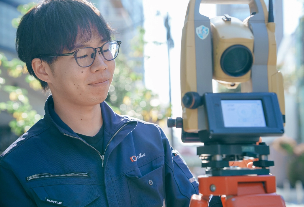 大学4年生の就職活動中に共立パートナーズのインターンを見つけて参加し、測量の現場に連れて行ってもらいました。この業界は年配の方が多いのだろうと考えていたのですが、共立パートナーズは若手のスタッフが多く活躍していて、いきいきと働いている雰囲気や環境を目の当たりにし、自分もここで働きたいと思うようになりました。